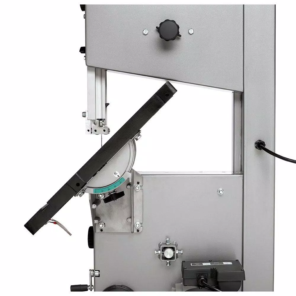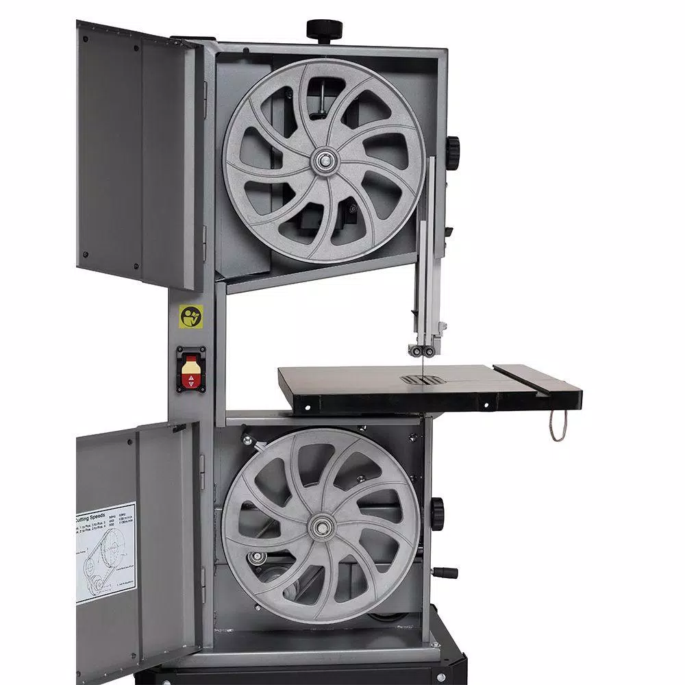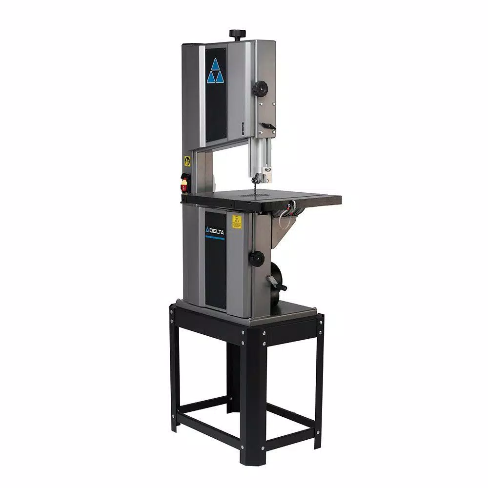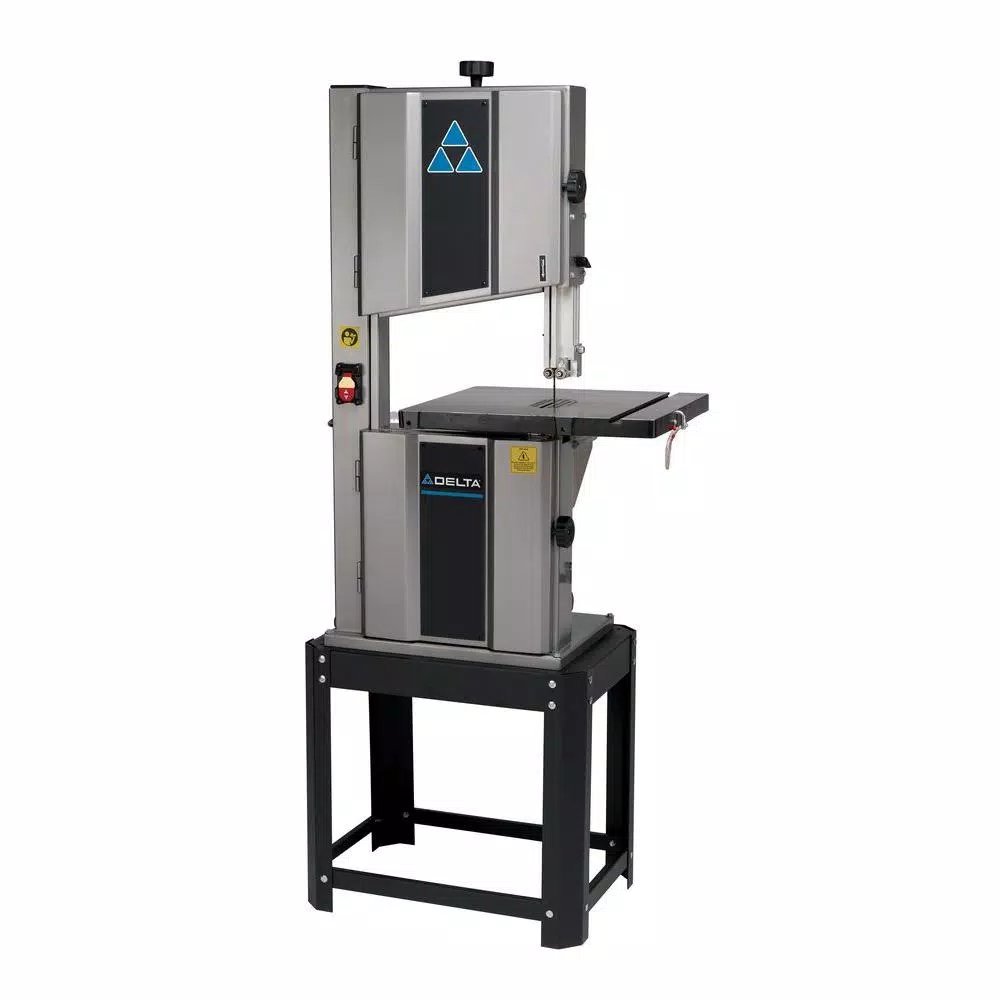 This Heavy-Duty Steel Frame Bandsaw from Delta boasts a dual-voltage (115/230V) TEFC motor for powering through demanding re-sawing applications needed for any woodworking project. A two-speed pulley system provides the flexibility needed for cutting a variety of materials and the oversized cast iron table provides exceptional support for larger cutting operations. This saw features rubber-coated upper and lower nine-spoke wheels for superb blade tracking, while the table’s standard-sized T-slot accepts all 3/4 in. x 3/8 in. miter gauges.