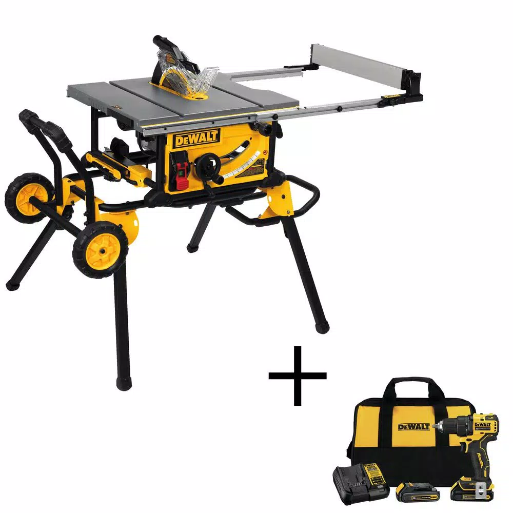 The DEWALT DWE7491RS offers the ultimate in table saw mobility by pairing a DEWALT 10 in. table saw with a rolling stand. This table saw is designed with a 15 Amp motor that quickly rips through hardwoods with ease. A rack and pinion fence system makes fence adjustments fast, smooth and accurate. The rolling stand is designed for easy set up and break down with excellent stability. For a limited time get a bonus ATOMIC 20-Volt Lithium-Ion 1/2 in. Drill Driver Kit with purchase.