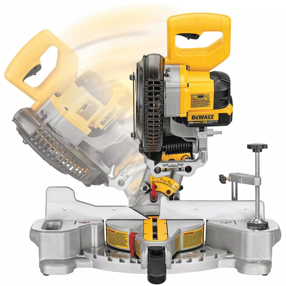 - Utilizes a 20-Volt Max battery pack (DCB204) which provides on average, 183 cuts of 2 in. x 4 in. pine or 535 cuts of 3-1/4 in. MDF baseboard