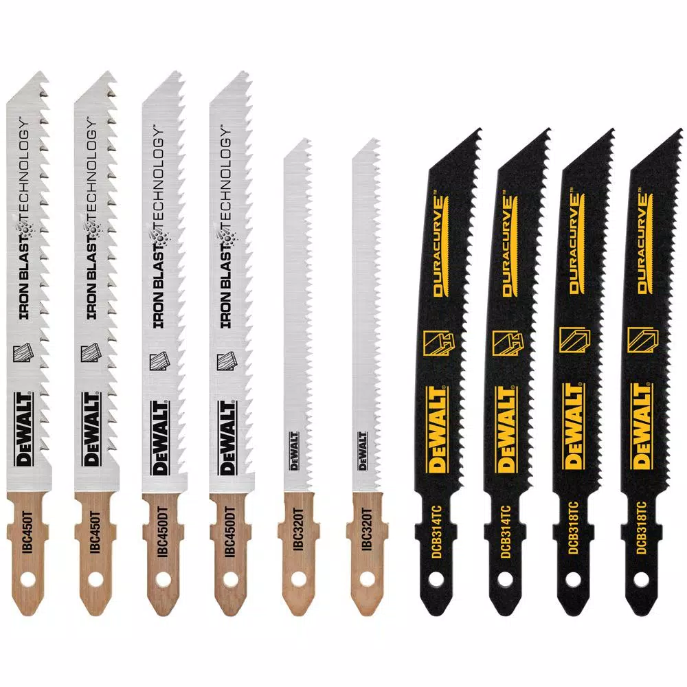 - DWAJTIB10PCKIT includes 2 blades for clean wood (IBC450T), 2 down cutting (IBC450DT), 2 scroll cutting (IBC320T), 2 medium metal (DCB318TC) and 2 thick metal (DCB314TC)