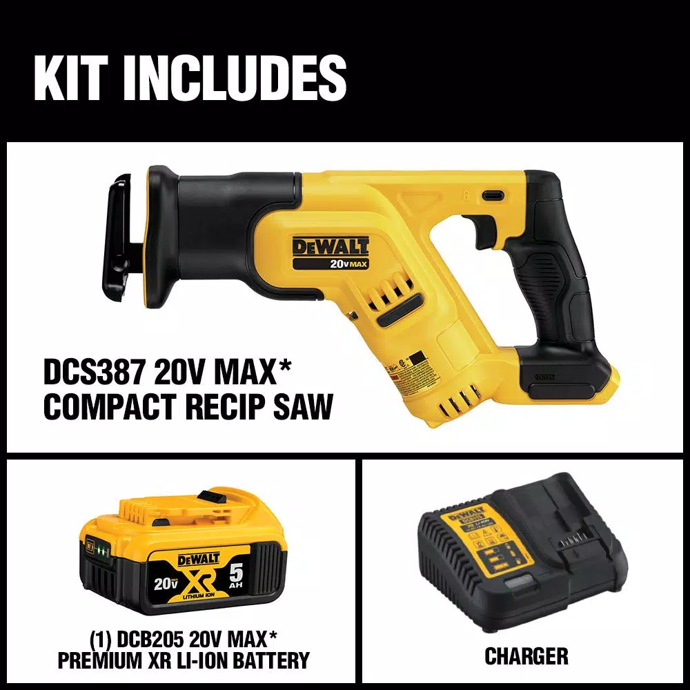 The DEWALT DCS387P1 Reciprocating Saw features a compact and lightweight design. This saw’s 14.5 in. in total length fits between studs and allows users to make cuts in confined spaces. A 4-Position Blade Clamp allows for flush cutting and increased positional versatility with tool free blade changes.