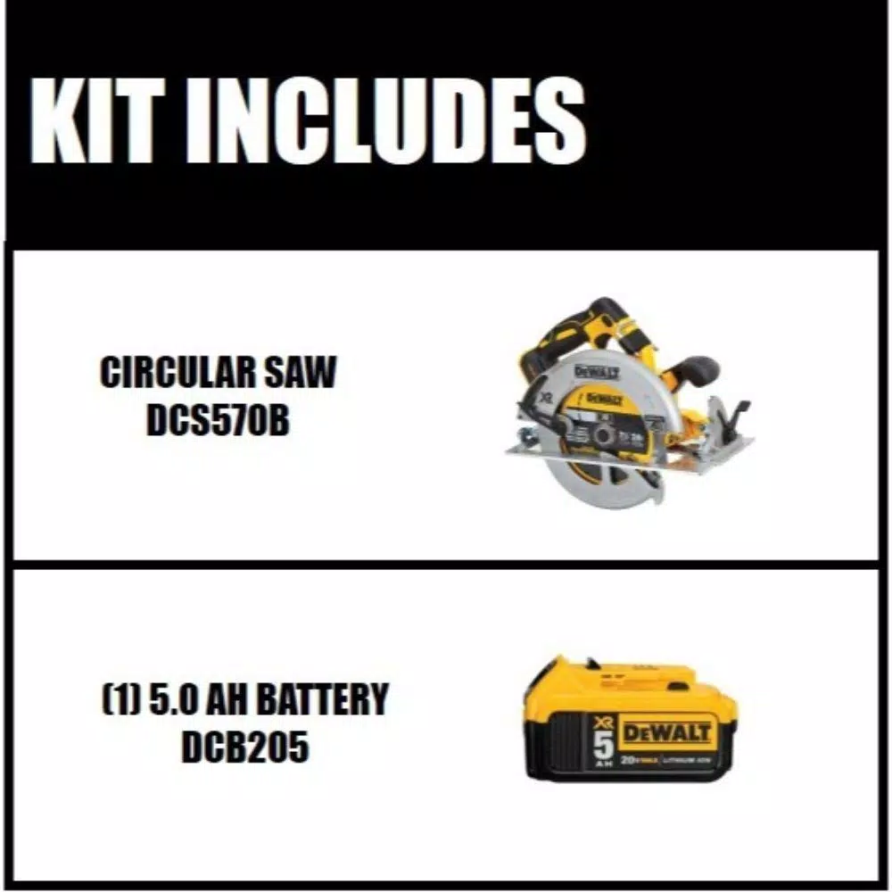 The DCS570 provides the end user with the power and depth of cut they receive in a corded circular saw with the portability and convenience of cordless. DEWALT brushless motor technology delivers excellent performance and runtime. Ideal for cross cutting 2X material and ripping sheet goods. Keep your DEWALT 20-Volt tools running longer with the 20-Volt MAX Lithium-Ion Premium Battery Pack (DCB205). This battery is compatible with the complete line of DEWALT 20-Volt MAX tools. This battery is backed by a DEWALT 90-day money-back guarantee and 3-year free service contract for added peace of mind.