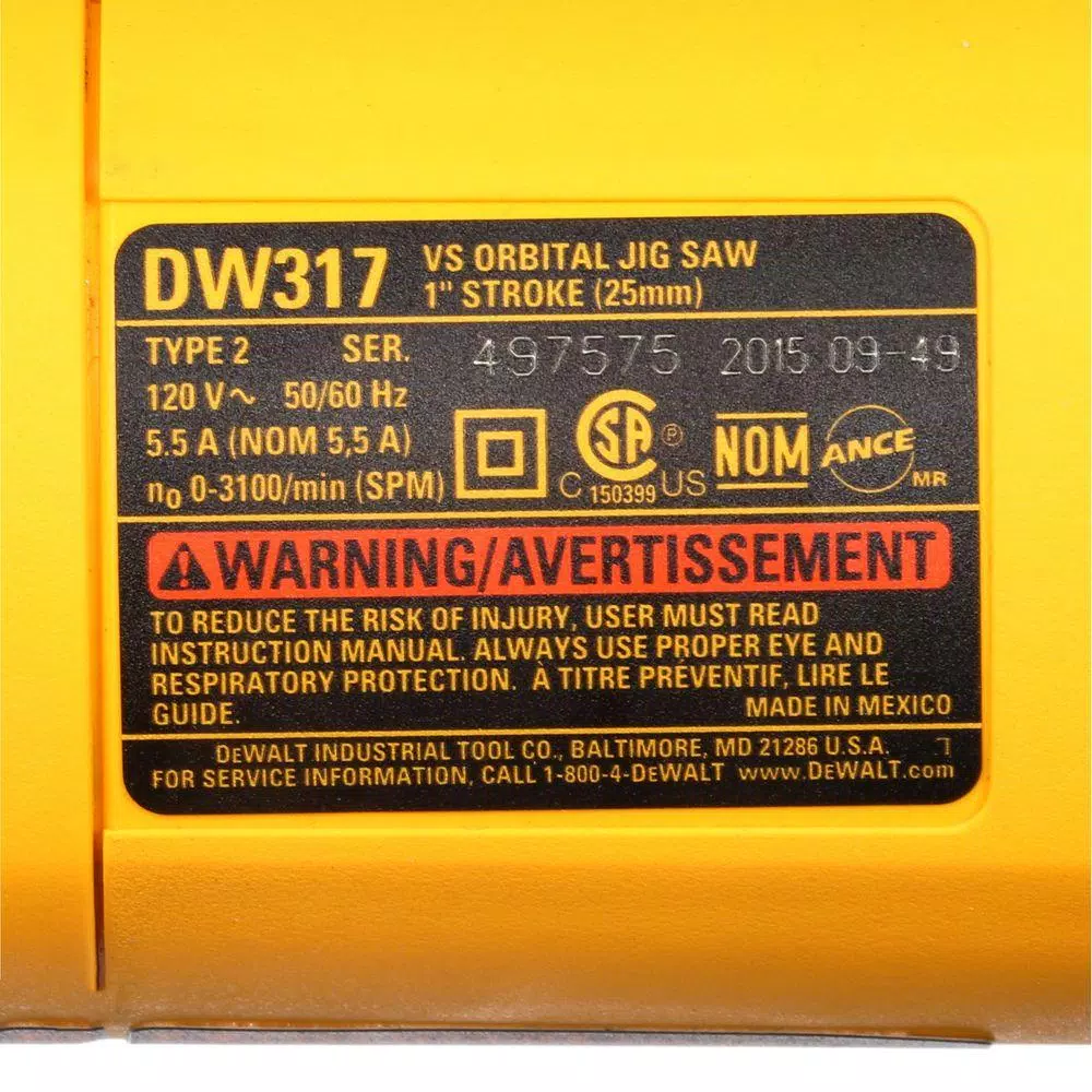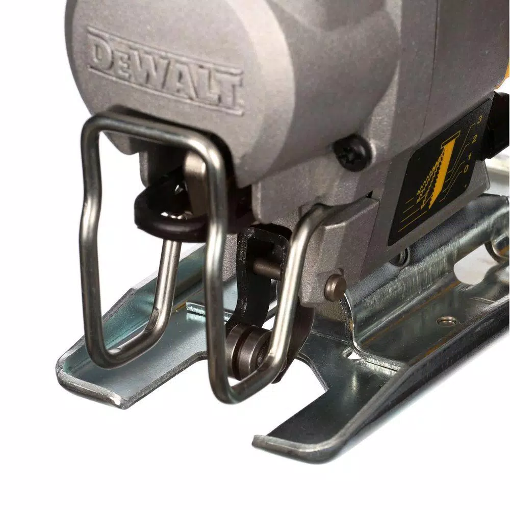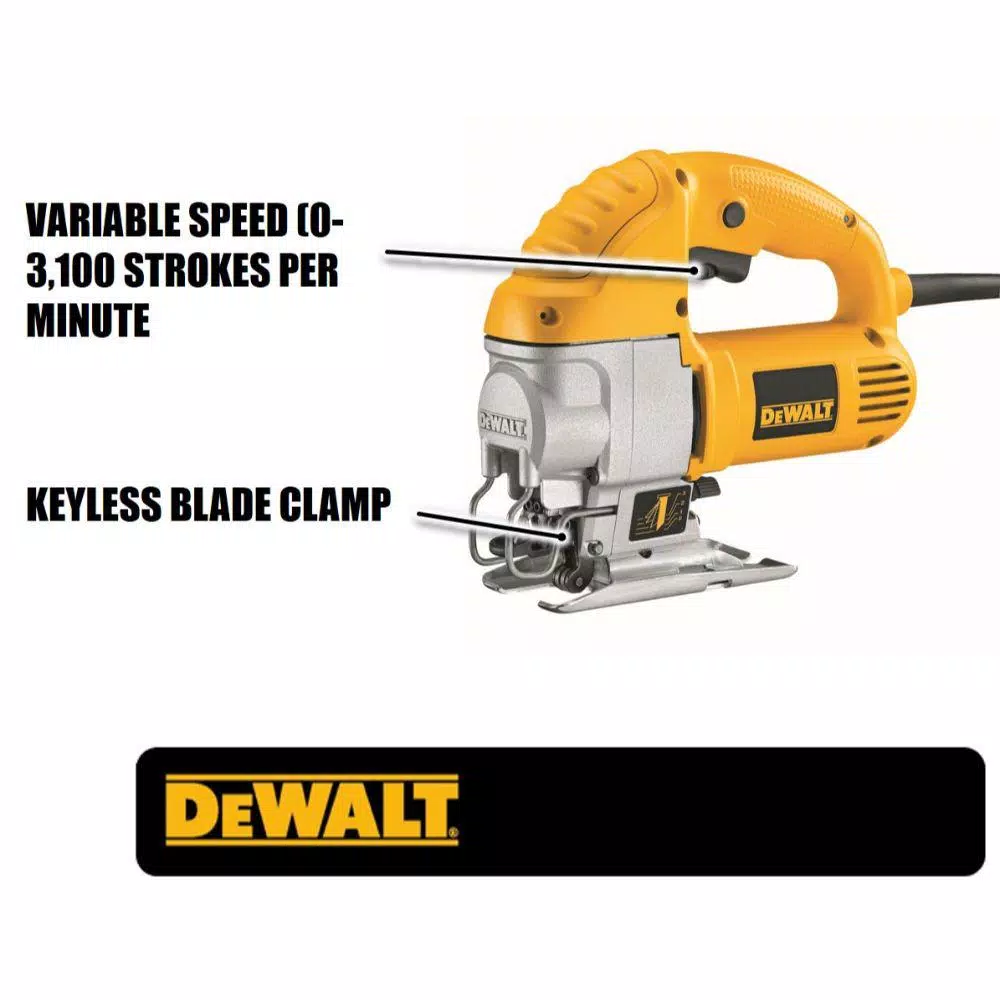 The DEWALT 5.5 Amp Jigsaw Kit delivers a powerful cutting performance in tough materials. The variable-speed trigger delivers 0-3100 SPM to match the speed to the material youโre cutting. The 4-position orbital operation provides aggressive cutting of a variety of materials.