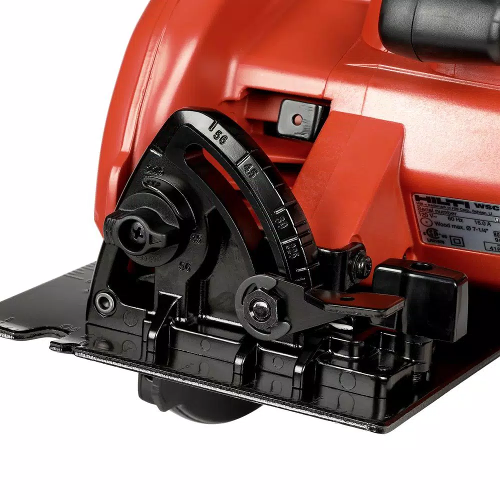 Introducing Hiltiβs new generation of 7-1/4 in. circular saws: the Hilti WSC 7.25-S. With a reinforced base plate that will allow you to glide through BB plyform, pressure treated wood as well as any 2x material, the new WSC 7.25-S provides the smooth cut that the pros are looking for. This innovative circular saw also offers a strong housing that will resist tough jobsite conditions. Clear markings deeply engraved in the base along with its solid, easy-to-adjust knobs easily set the tool to the right angle for a perfect, true cut. Powered by a sturdy 15 Amp motor there are no cutting jobs this tool canβt tackle.