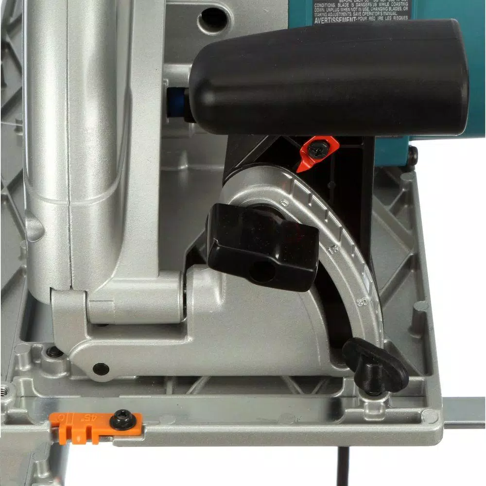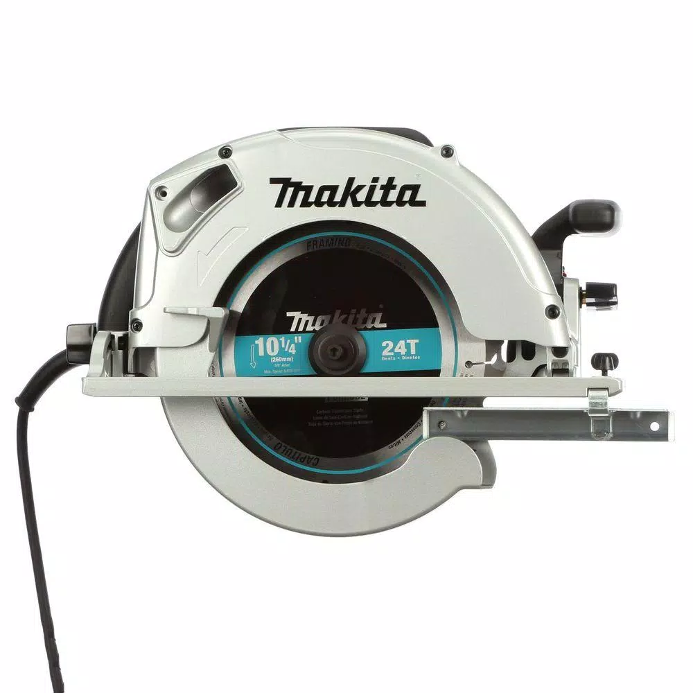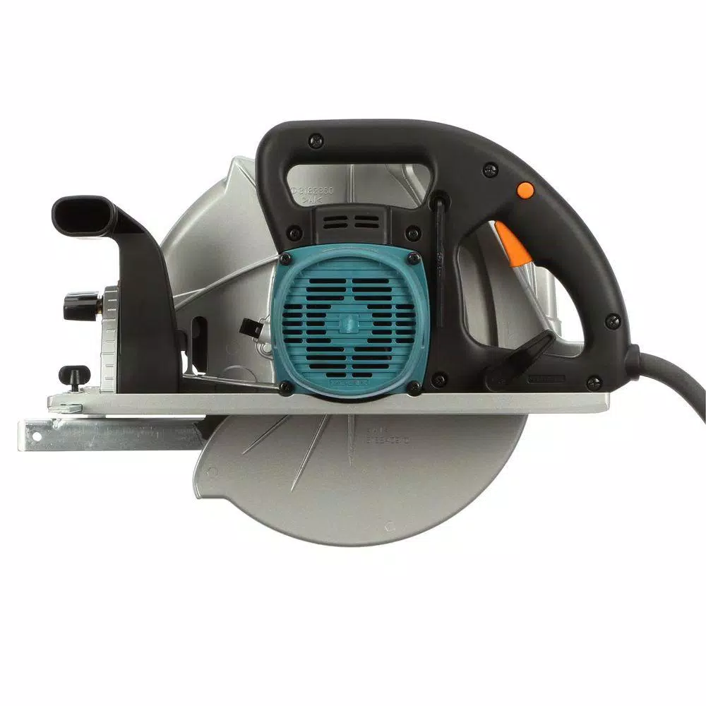 The Makita Circular Saw with Electric Brake has a 14 Amp motor and 3800 RPM for enough power to cut beams, timber and 4 times the material in a single pass. Featuring a large cutting and bevel capacity and precision gearing with a ball and needle bearing design, this saw is loaded with a variety of ease-of-use features, including an electric brake, an adjustable top guide to align notches with line-of-cut and the blade wrench attached to the saw for fast blade changing. The large and conveniently-located adjustment knobs and levers are engineered for easier adjustments and the well-balanced design and lightweight 20.3 lb. design allow for easy maneuverability and less user fatigue.