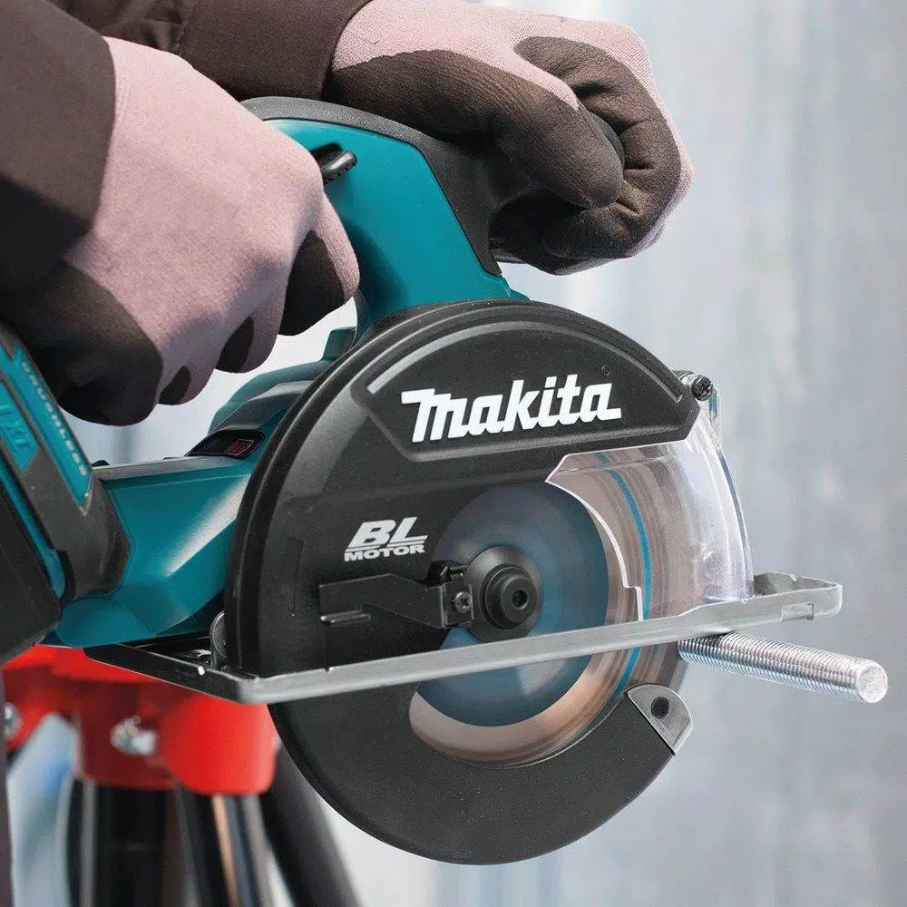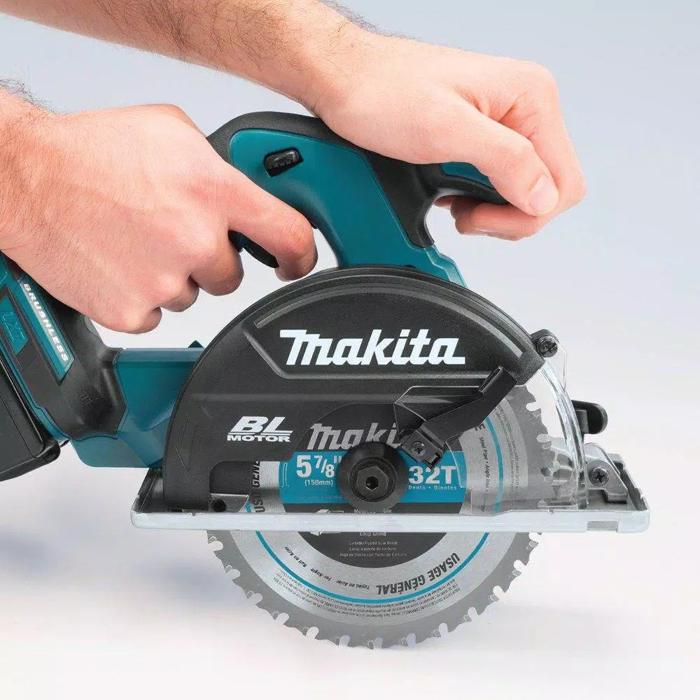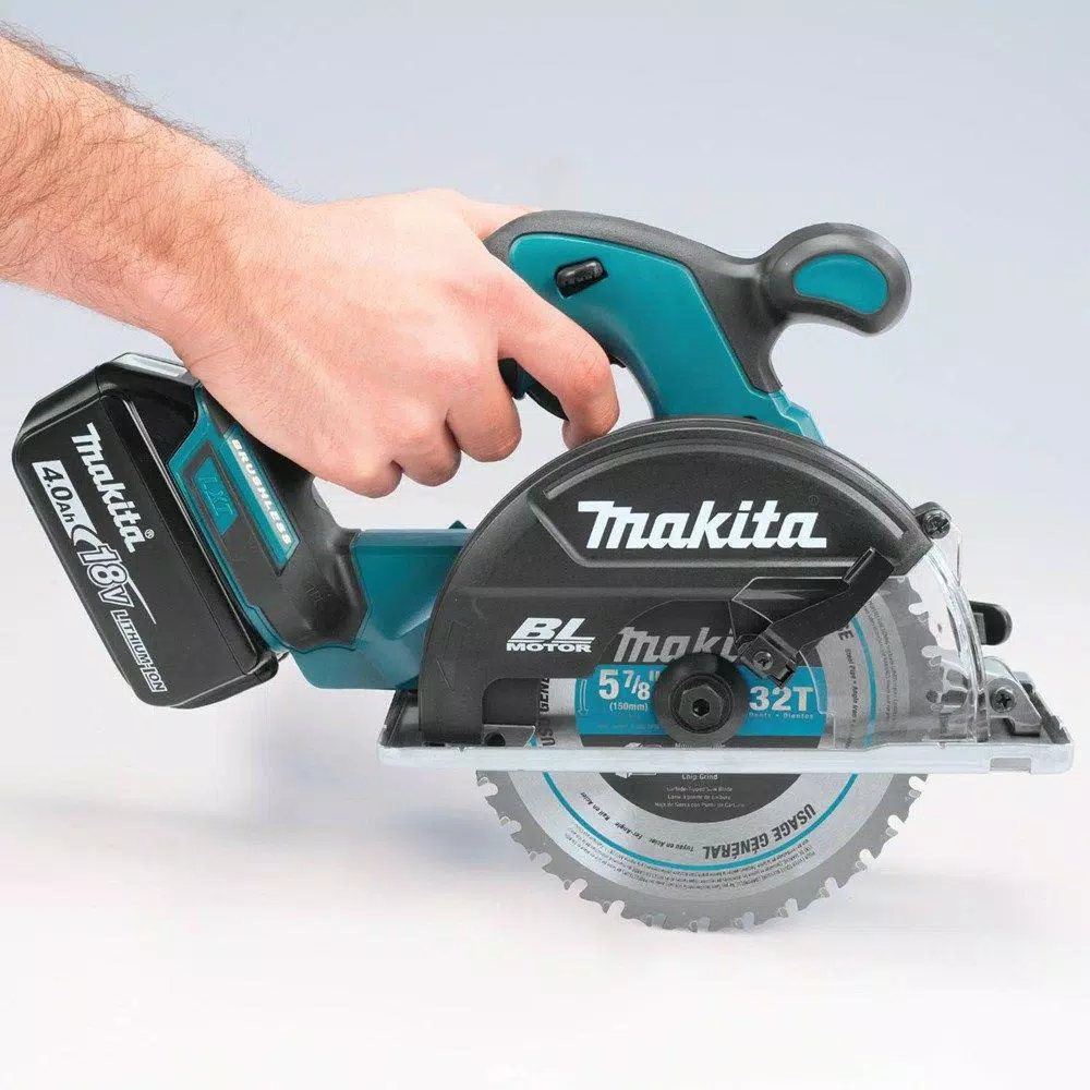 Makita is the leader in brushless motor technology and the 18-Volt LXT Lithium-Ion Brushless 5-7/8 in. Cordless Metal Cutting Saw (model XSC02Z, tool only) delivers faster metal cutting through Unistrut, all thread, channel, corrugated, conduit, pipe, sheet metal, square tubing, steel and more. With a full 2-1/4 in. cutting capacity, it is ideal for electrical contractors since it will cut 2 in. conduit in 1 pass a huge time saver. It is also ideal for HVAC, installation, metal building, metal fabrication, plumbing, metal roofing and for any pro-contractor who requires a best-in-class cordless metal cutting saw. Makita offers 4 optimum 5-7/8 in. blade options for use with the XSC02Z: 32T carbide tipped for metal and general purpose; 52T for thin metal; 52T for aluminum; and 60T for stainless steel (all sold separately). Itโs part of Makitaโs expanding 18-Volt Lithium-Ion series, the worldโs largest cordless tool line-up powered by an 18-Volt Lithium-Ion slide-style battery. Makita 18-Volt Lithium-Ion batteries have the fastest charge times in their categories, so they spend more time working and less time sitting on the charger.