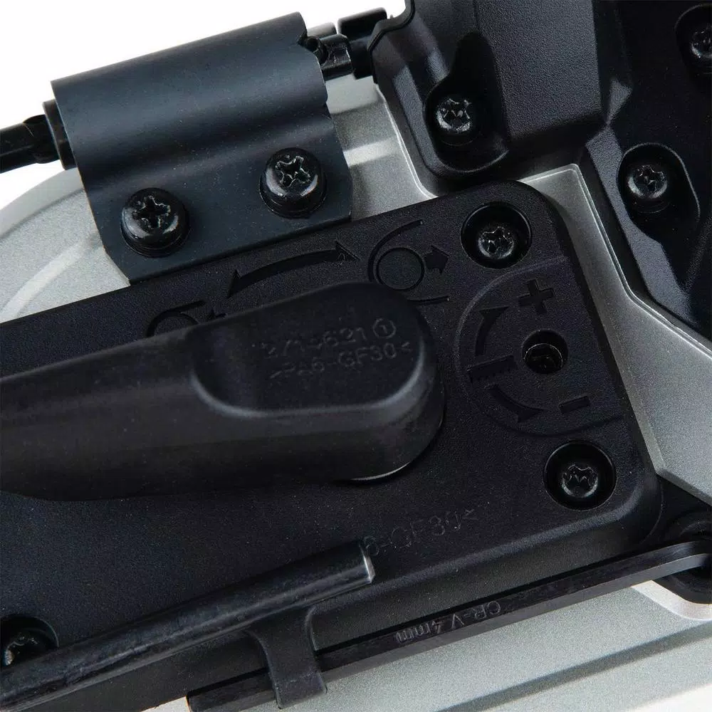 - Trigger switch with lock-off feature requires two actions to power on the band saw
