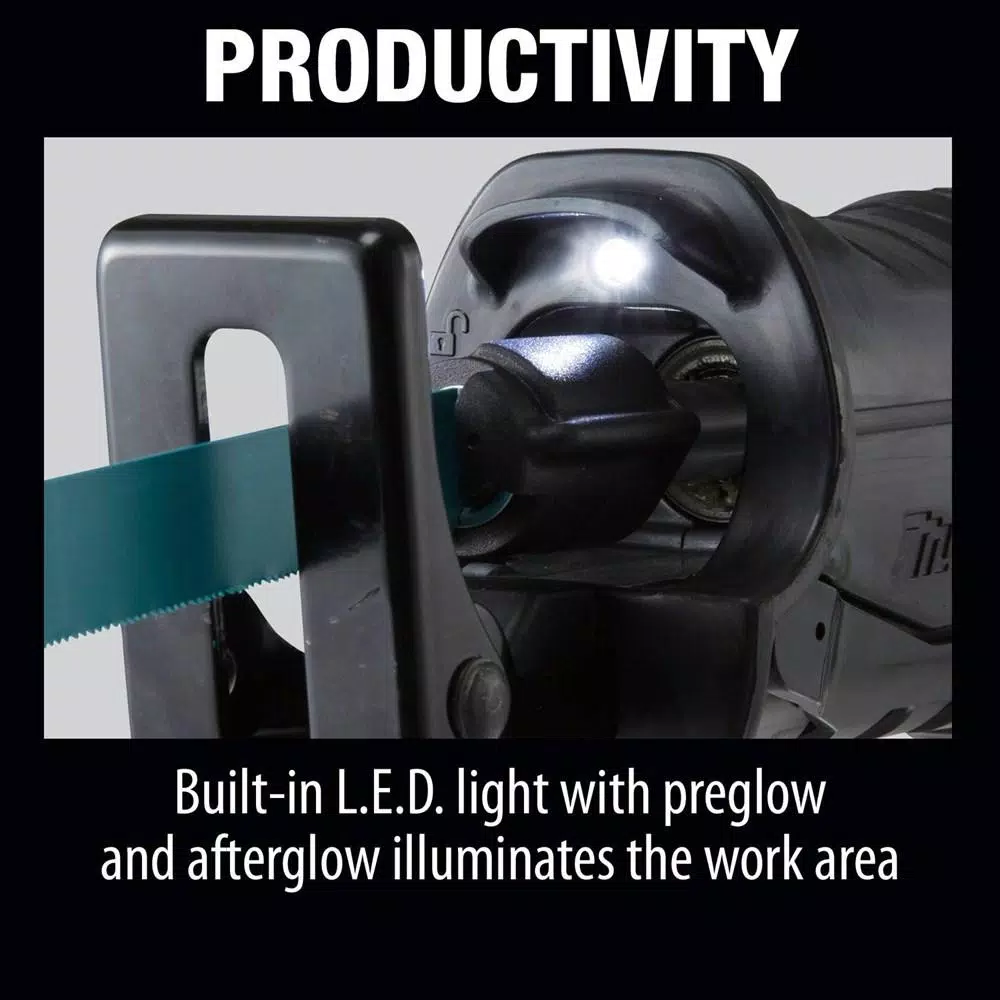 Makita, a pioneer in brushless motor technology and battery innovation, combines both in the 18-Volt X2 LXT (36-Volt) Lithium-Ion Brushless Reciprocating Saw Kit. It’s powered by two 18-Volt Lithium-Ion batteries (sold separately) for 36-Volt power and performance and has an electronically-controlled BL Brushless motor that matches torque and RPM to the application. Makita 18-Volt X2 means freedom from the cord, even for demanding applications like cutting and demolition that traditionally called for a corded reciprocating saw. Best of all, users can remain in one battery platform, using the same fast-charging 18-Volt batteries on the XRJ06Z as they use across the Makita 18-Volt LXT cordless tool line-up. The XRJ06Z is equipped with efficiency features for faster cutting. The long 1-1/4 in. stroke length increases cutting efficiency and the refined crank mechanism design minimizes blade deflection and reduces vibration. Convenience features include an LED light to illuminate the line of cut, retractable tool hook and “tool-less” blade change for faster blade installation and removal. For improved tool performance and extended battery life, Makita created Star Protection Computer Controls. Star Protection is communication technology that allows the Star Protection-equipped tool and battery to exchange data in real time and monitor conditions during use to protect against overloading, over-discharging and overheating.