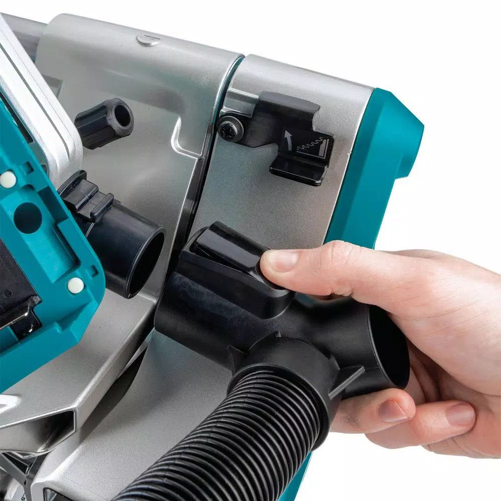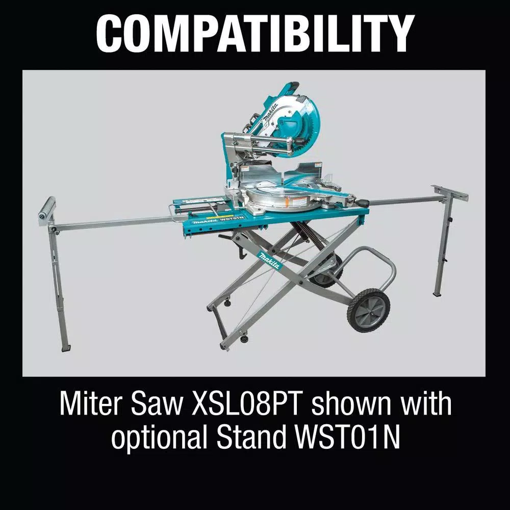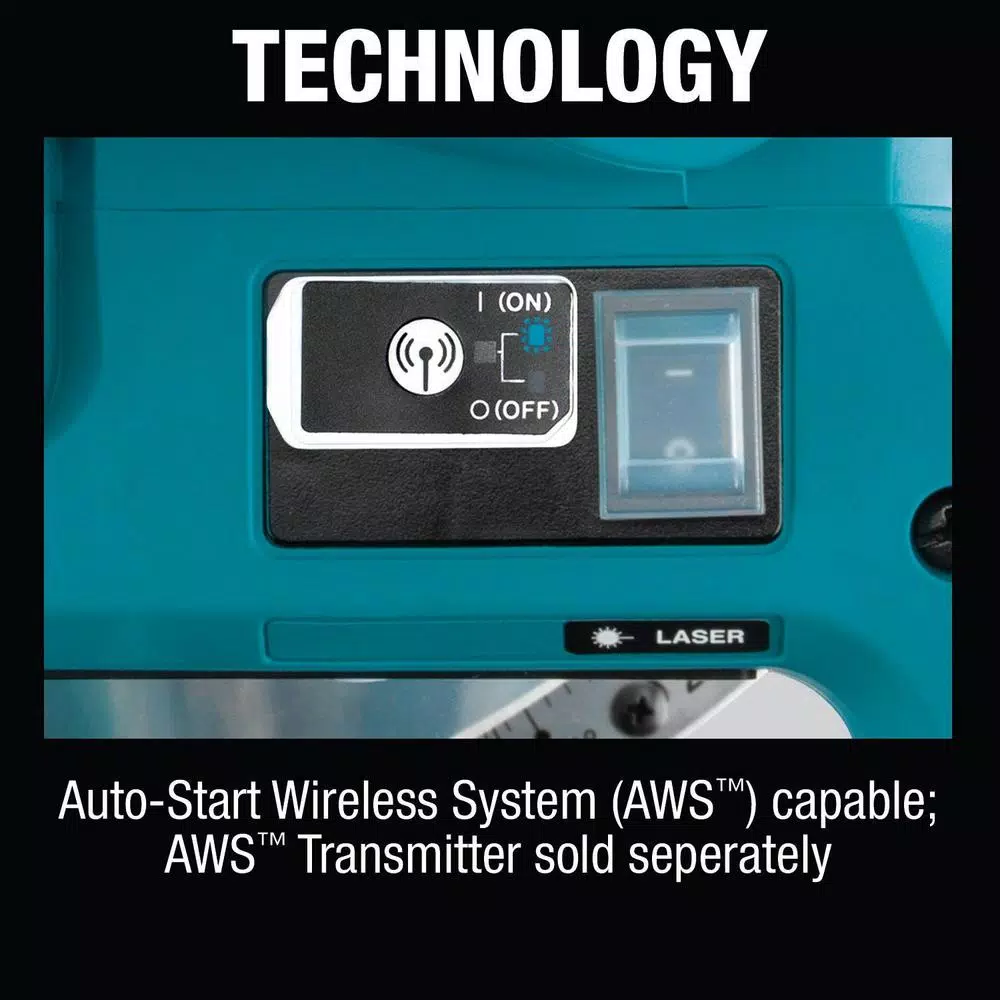 Makita is a pioneer in brushless motor engineering, battery technology, and miter saw innovation and has combined this expertise in the 18-Volt X2 LXT (36-Volt) Lithium-Ion Brushless 12 in. Dual Bevel Sliding Compound Miter Saw (tool-only, batteries and charger sold separately). It’s powered by two 18-Volt Lithium-Ion batteries for 36-Volt power and performance, but without leaving the 18-Volt LXT platform. X2 LXT technology delivers increased power, speed, and run time, without the hassles of a cord. Get up to 175 cuts per charge in 2 in. x 12 in. SPF lumber with two 5.0 Ah batteries (sold separately). The efficient BL Brushless Motor runs cooler and more efficiently for longer tool life and delivers up to 4,400 RPM for fast and smoother cutting. The XSL08Z also features Automatic Speed Change technology to adjust cutting speed and torque under load for optimum performance. For improved efficiency, its equipped with Auto-Start Wireless System technology. AWS utilizes Bluetooth technology for wireless communication between the tool and dust extractor (sold separately). When the trigger of the AWS-equipped XSL08Z is engaged, the AWS-equipped dust extractor powers-up.