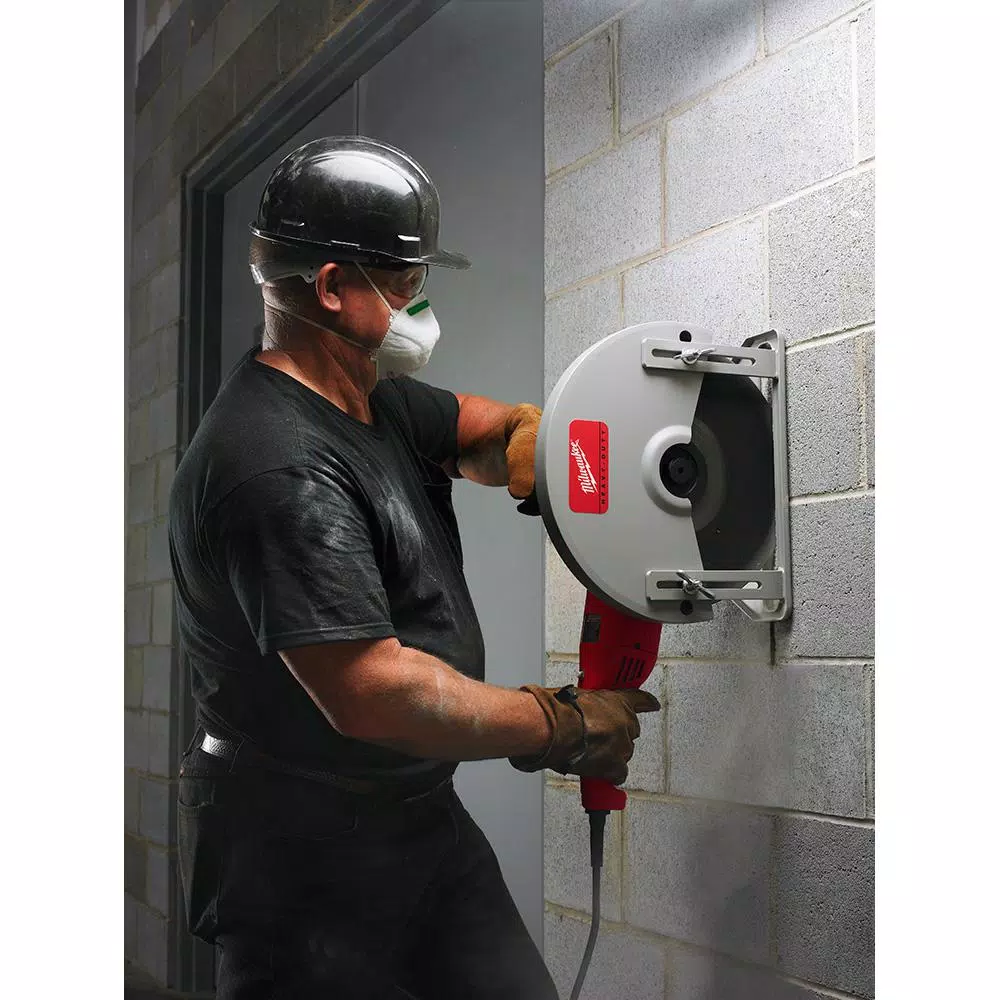 With its powerful 15 Amp motor, the Milwaukee 14 in. Cutoff Saw delivers a maximum of 4,500 RPM and 4.8 HP for excellent cutting performance. A downward cutting rotation pulls the blade through the material that you are cutting, providing a clear sight line and helping to minimize jamming and kickback. The non-slip main grip and tactile, oversized side handle make this saw comfortable to operate. The 20 Amp overload-protection switch trips the tool (rather than a remote breaker) to help prevent damage.