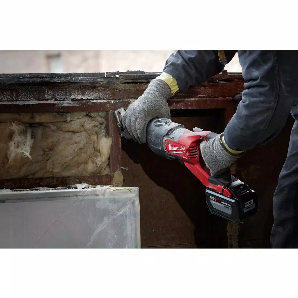 The Milwaukee M18 FUEL SUPER SAWZALL generates the power of a 15 Amp Corded Reciprocating Saw, Faster Cuts than the legendary Milwaukee 15 Amp AC SUPER SAWZALL, and Up To 150 Cuts in 2×12 SPF per charge. Designed to perform in the toughest applications the M18 FUEL SUPER SAWZALL combines Milwaukee’s legendary performance and durability with the portability of the M18 platform. The POWERSTATE Brushless Motor Provides 3,000 SPM and higher speeds under load for corded cutting performance. REDLINK PLUS intelligence ensures maximum performance and protection from overload, overheating and over discharge. The M18 Redlithium High output HD12.0 battery delivers unmatched run-time in all applications. The 1-1/4 in. stroke length removes more material with each stroke and selectable On/Off Orbital action provides aggressive cuts in wood and smooth cuts in metal. Variable speed trigger and 5 speed dial provide maximum speed control for any application. The QUIK-LOK blade clamp allows for tool less blade changes and a rafter hook provides a convenient way to store the saw between cuts.