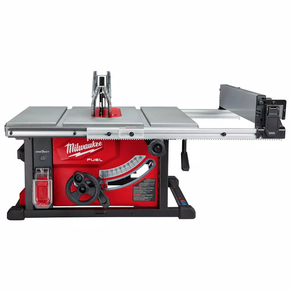 Work with power and high performance with this Milwaukee Cordless M18 FUEL 8-1/4 in. Table Saw. Designed for professional carpenters, remodelers and general contractors, this saw has 24-1/2 inch rip capacity and up to 600 linear feet of cutting per charge. ONE-KEY Smart Technology allows wireless tool connectivity so you can track and manage your toolβs performance and location within a 100 ft. range of your smart device. The saw includes a battery, charger, blade, guard and miter gauge.