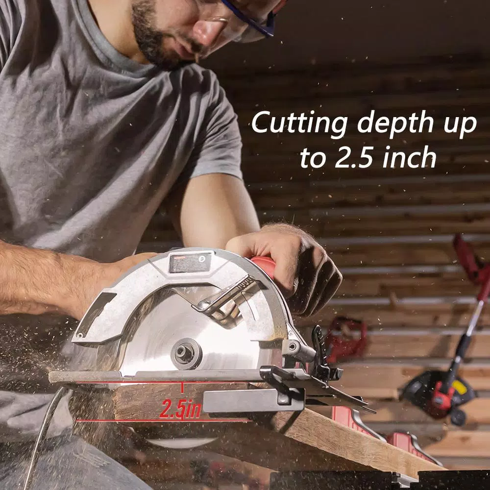 This 7-1/4 in. circular saw is equipped with a powerful 14 Amp motor. The lightweight rugged aluminum housing is easily to handle with all-day use. Easily adjustable footplate for precise bevel cuts.
