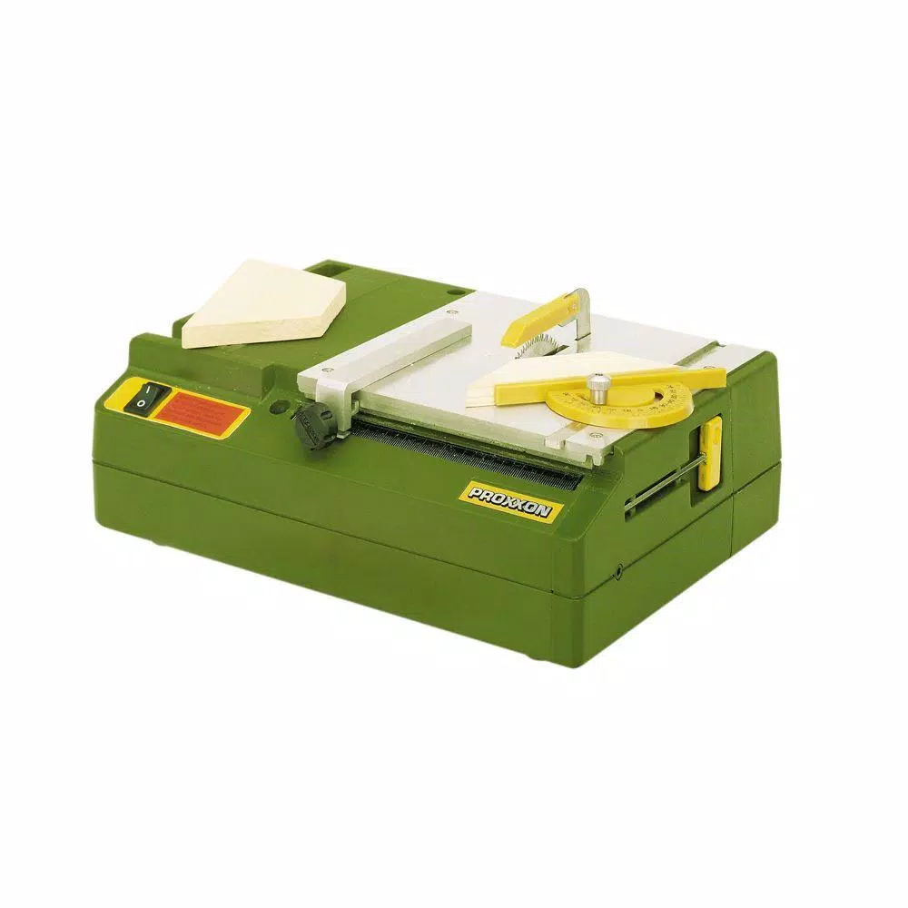 The machine is a specialist to cut the smallest pieces, whenever working with a regular circular saw is impossible and too dangerous. The high-performance 110 β 120-Volt motor is very quiet and has a prolonged life expectancy. Cutting depths: in wood up to 5/16 in. (8 mm), in plastic (also circuit boards) up to approx. 1/8 in. (3 mm), in non-ferrous metals up to 1/16 in. (1.5 mm). Even fiberglass reinforced plastics can be cut with the carbide tipped saw blade (available as accessory). The machined and perfectly plane aluminum worktable in size 6 1/4 in. x 6 1/4 in. (160 x 160 mm) allows for sliding the work piece easily. The housing is made of sturdy plastic (ABS) with a side door to conveniently remove saw dust. With the included Super Cut Saw Blade 2 9/32 in. (58 mm) it is possible to cut soft wood up to 5/16 in. (8 mm). Other saw blades, available as accessories in our program, with 2 in. (50 mm), still ensure up to 15/64 in. (6 mm) cutting depth. Overall size approx. 10 1/4 in. x 7 5/8 in. x 3 11/64 in. (265 x 195 x 85 mm). Weight approx. 4 lb. (1.8 kg).