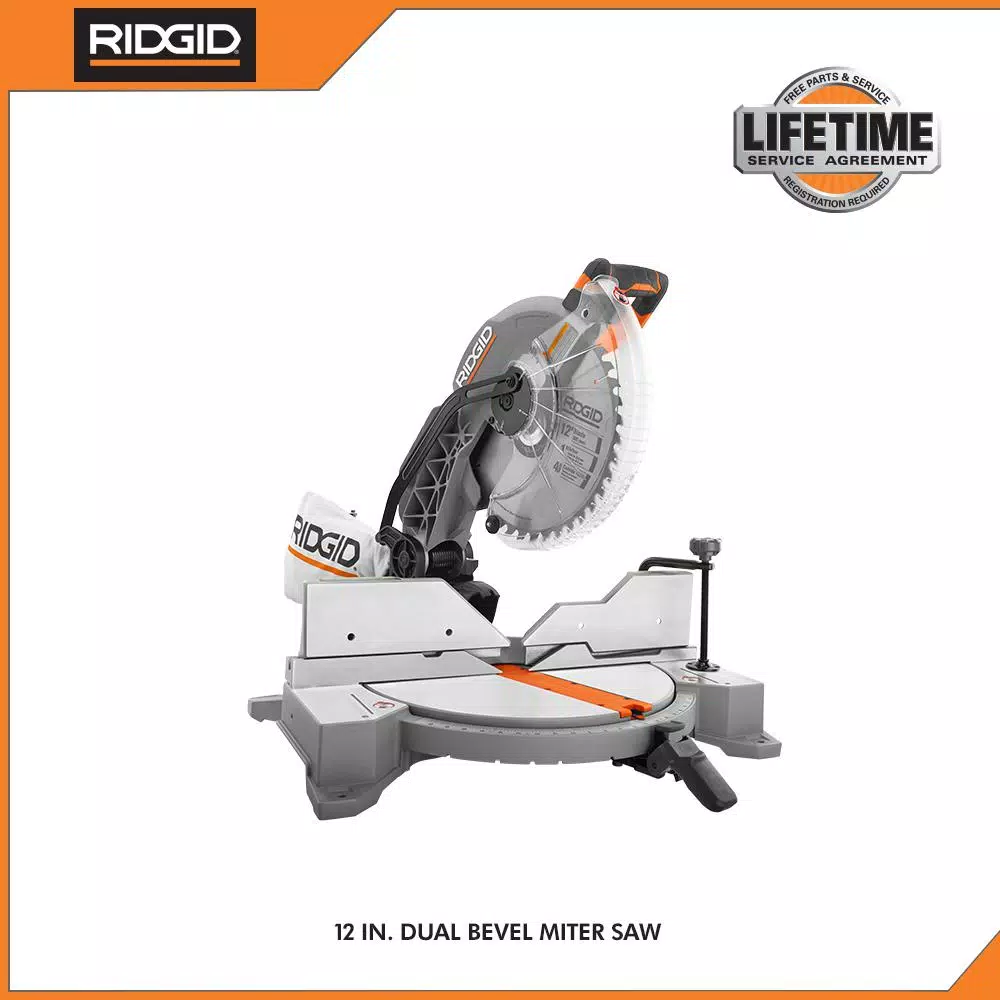 RIDGID introduces the 15 Amp Corded 12 in. Dual Bevel Miter Saw with LED. Its dual bevel capability and adjustable miter table make it perfect for a wide range of cuts and applications. A powerful motor paired with best-in-class features provides ultimate convenience on any job site. Backed by the Industry Leading Lifetime Service Agreement, the 15 Amp 12 in. Dual Bevel Miter Saw with LED includes a 12 in. blade and blade wrench, sliding miter fences, a dust bag, a work clamp, and an operatorโs manual.