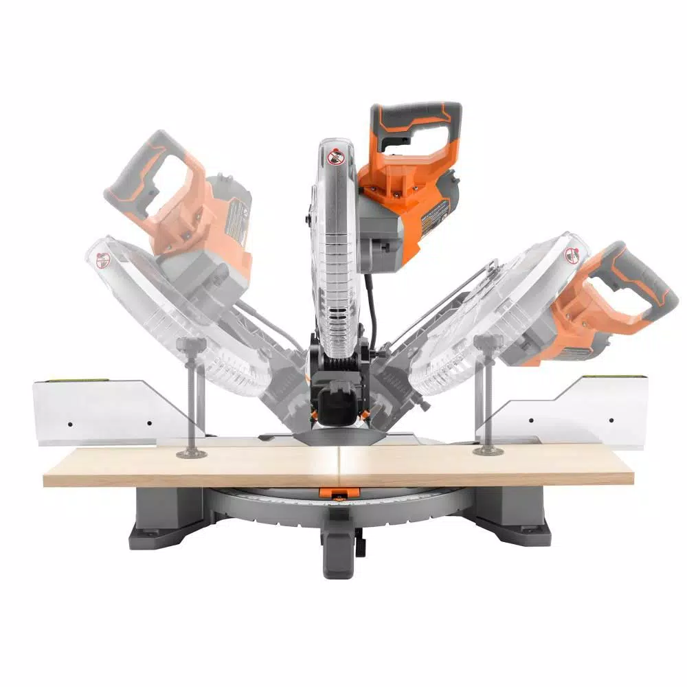 - Includes: (1) R4123 15 Amp 12 in. Dual Bevel Miter Saw with LED, (1) 12 in. blade and blade wrench, (2) sliding miter fences, (1) dust bag, (1) work clamp, and operatorโs manual