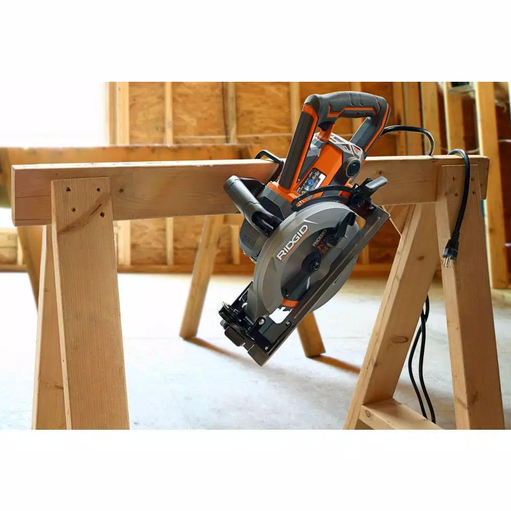 RIDGID introduces the 15 Amp THRUCOOL 7-1/4 in. Worm Drive Circular Saw. The RIDGID THRUCOOL 7-1/4 in. Worm Drive Saw has upgraded to a THRUCOOL motor to optimize performance. THRUCOOL Motor Technology allows air to flow through the center of the motor and out the sides for more efficient cooling. This saw uses top of the line technology to improve speed and performance while also keeping the saw lightweight and compact. This tool is backed by the Lifetime Service Agreement providing FREE Parts, FREE Service, For LIFE. The THRUCOOL 7-1/4 in. Worm Drive Circular Saw includes the 7-1/4 in. blade, hex key, and an operatorโs manual.