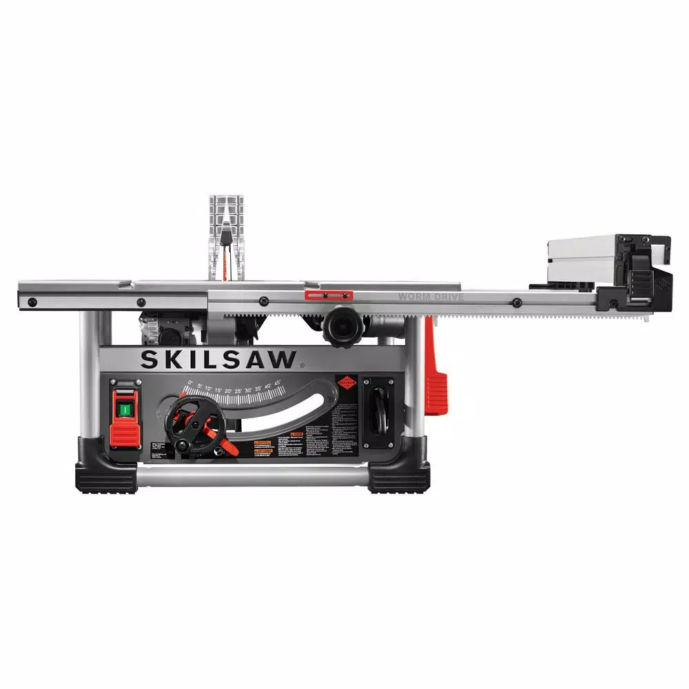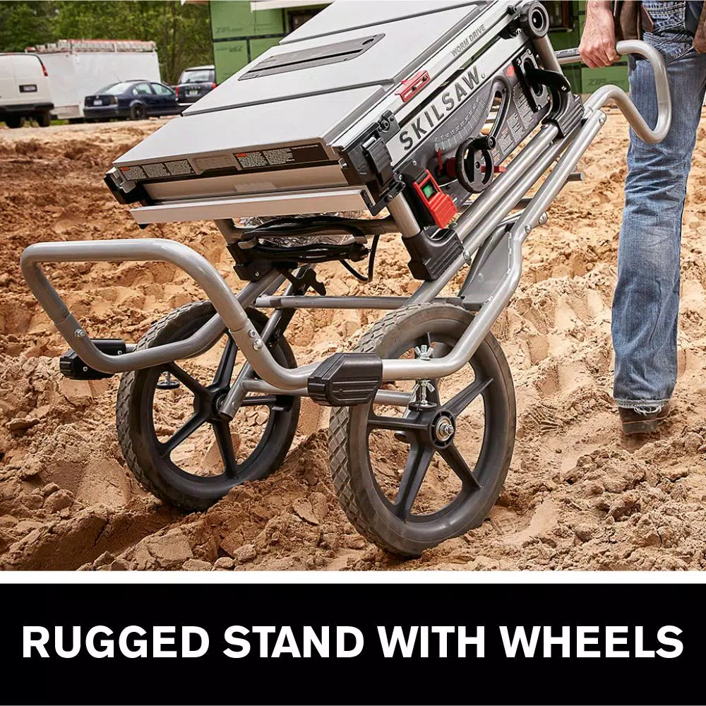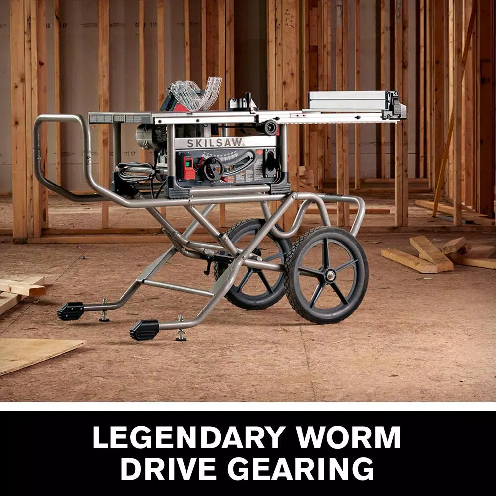 The 10 in. Heavy-Duty Worm Drive Table Saw is the latest addition to SKILSAW table-saw lineup. SKILSAW legendary Worm Drive power train delivers superior torque, an aggressive 3 in. D of cut and 30 in. rip capacity. Tear through plywood and slice 4X with ease and precision. The rack and pinion system makes fence adjustments quickly and smoothly for accurate cuts. SKILSAW patented Dual-Field Motor runs cooler so it can work harder, longer. The rugged stand delivers dependable stability and the 16 in. wheels easily take stairs and roll over uneven surfaces to just about anywhere you need to set up.