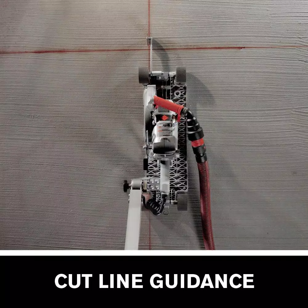 - Integrated rolling foot plate with integrated wheels allows saw to move smoothly across concrete surfaces